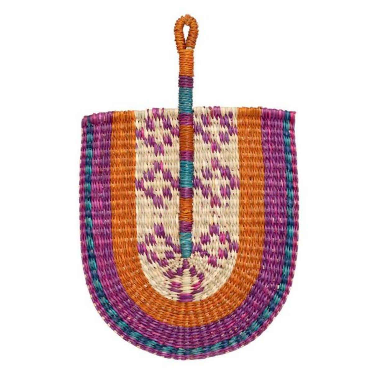 Informations Techniques : Dimensions : L. 29 x l. 1,8 x H. 45 cm Matière : Roseau Spécificités : Colorée & Ethnique Déco murale éventail À suspendre Poids : 0,14 kg Couleur : Multicolore