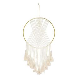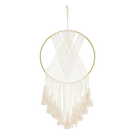 Informations Techniques : Dimensions : L. 36 x l. 1 x H. 77,2 cm Accroche : L. 13 cm Matières : Coton & Métal Spécificités : Design & Bohème Déco murale macramé Poids : 0,32 kg Couleur : Blanc