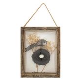 Informations Techniques : Dimensions : Avec corde : L. 19,7 x l. 9 x H. 37,5 cm Sans corde : L. 19,7 x l. 7 x H. 25,4 cm Matières : MDF & PET Spécificités : Originale & Pratique Déco murale à suspendre Design oiseau avec nid Vitre bombée transparente Poids : 0,5 kg Couleur : Marron