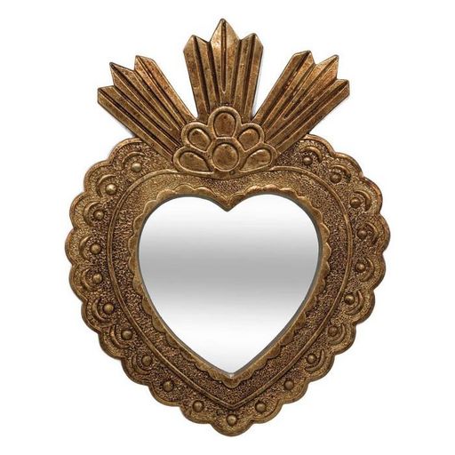 Informations Techniques : Dimensions : L. 21 x l. 2 x H. 28 cm Matières : Verre & Polyrésine Spécificités : Authentique & Chic Déco murale vitrée En forme de cœur Motifs sculptées Poids : 0,57 kg Couleur : Or