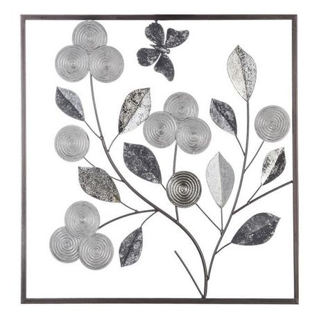 Décoration Murale Métal Fleurs 50cm Argent