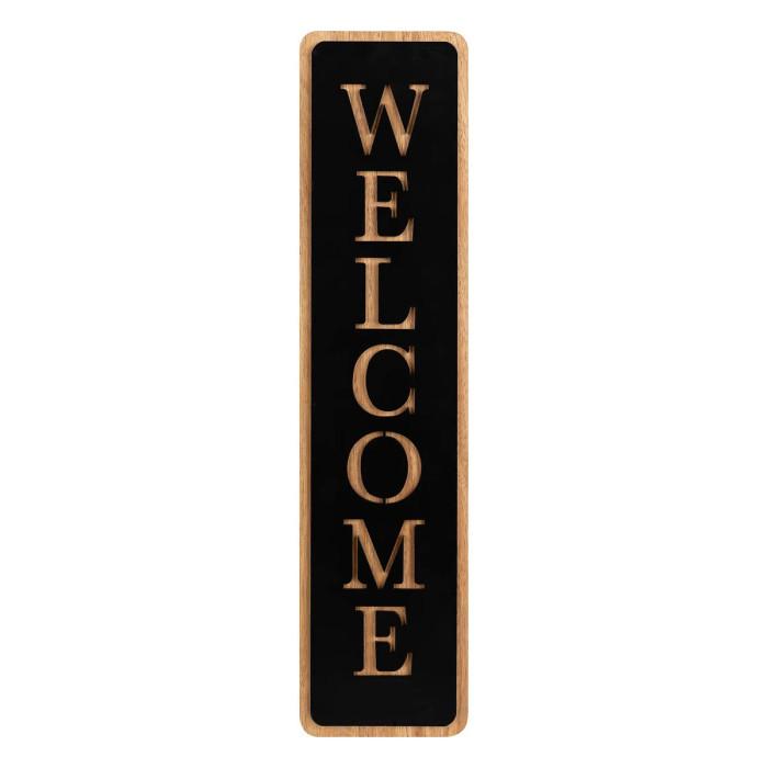 Informations Techniques : Dimensions : L. 14 x l. 1 x H. 57 cm Matière : MDF Spécificités : Rétro & Utile Déco murale Inscription Welcome Fixation à crochets Poids : 0,63 kg Couleur : Noir
