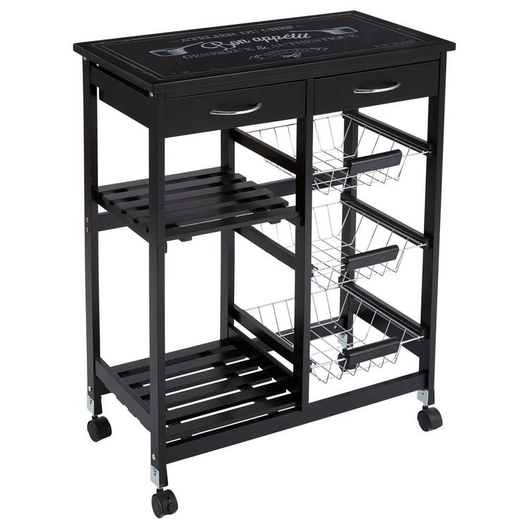 Organisez votre cuisine avec cette desserte noire à roulette pratique et tendance.