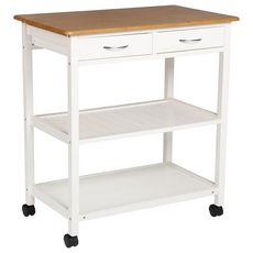 Desserte roulettes bois blanc imitation bambouCréez une décoration moderne et intelligente grâce à la desserte sur roulettes avec 2 tiroirs et 2 étagères en bois blanc et imitation bambou. Idéale pour servir et desservir votre table ou comme meuble d'appoint, cette desserte sur roulettes répondra à
