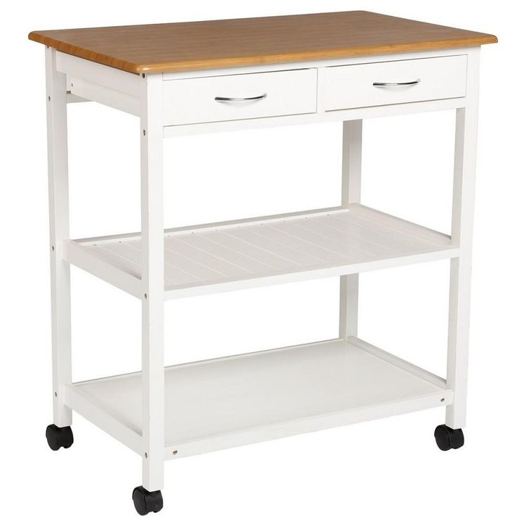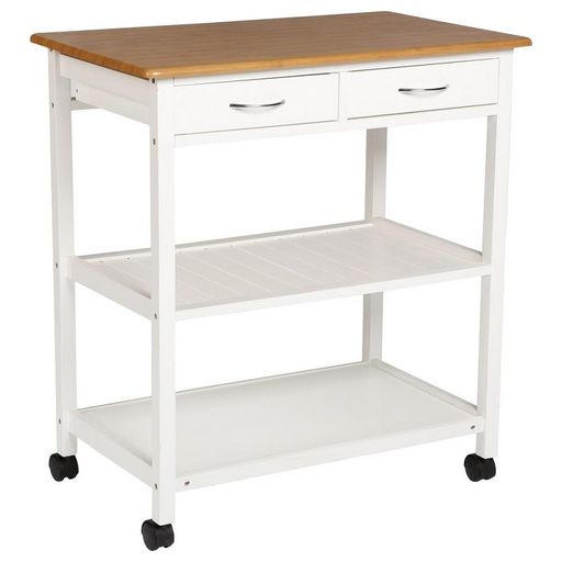 En savoir +Desserte roulettes bois blanc imitation bambouCréez une décoration moderne et intelligente grâce à la desserte sur roulettes avec 2 tiroirs et 2 étagères en bois blanc et imitation bambou. Idéale pour servir et desservir votre table ou comme meuble d'appoint, cette desserte sur roulettes répondra à tous vos besoins avec ses différents rangements.Informations sur la desserte roulettes bois blanc imitation bambou :Dimensions : L. 78 x P. 48 x H. 85,5 cmMatière : MDF, métal, polypropylène4 roulettesPoids : 15 kgA monter soi-même
