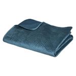 Dessus de lit en polyester, effet velours, broderies feuilles - 260x240 cm - Bleu Canard
