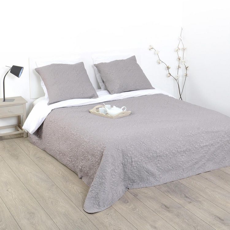 FICHE TECHNIQUE- Dessus de lit en polyester.- 2 Taies d'oreiller assorties.CARACTERISTIQUES TECHNIQUES- Dimensions : L. 260 x l. 240 x H. 0,2 cm.- Poids : 2,2 kg.