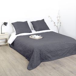 Dessus de lit et 2 taies Arabesque - 260 x 240 cm. - Lin
