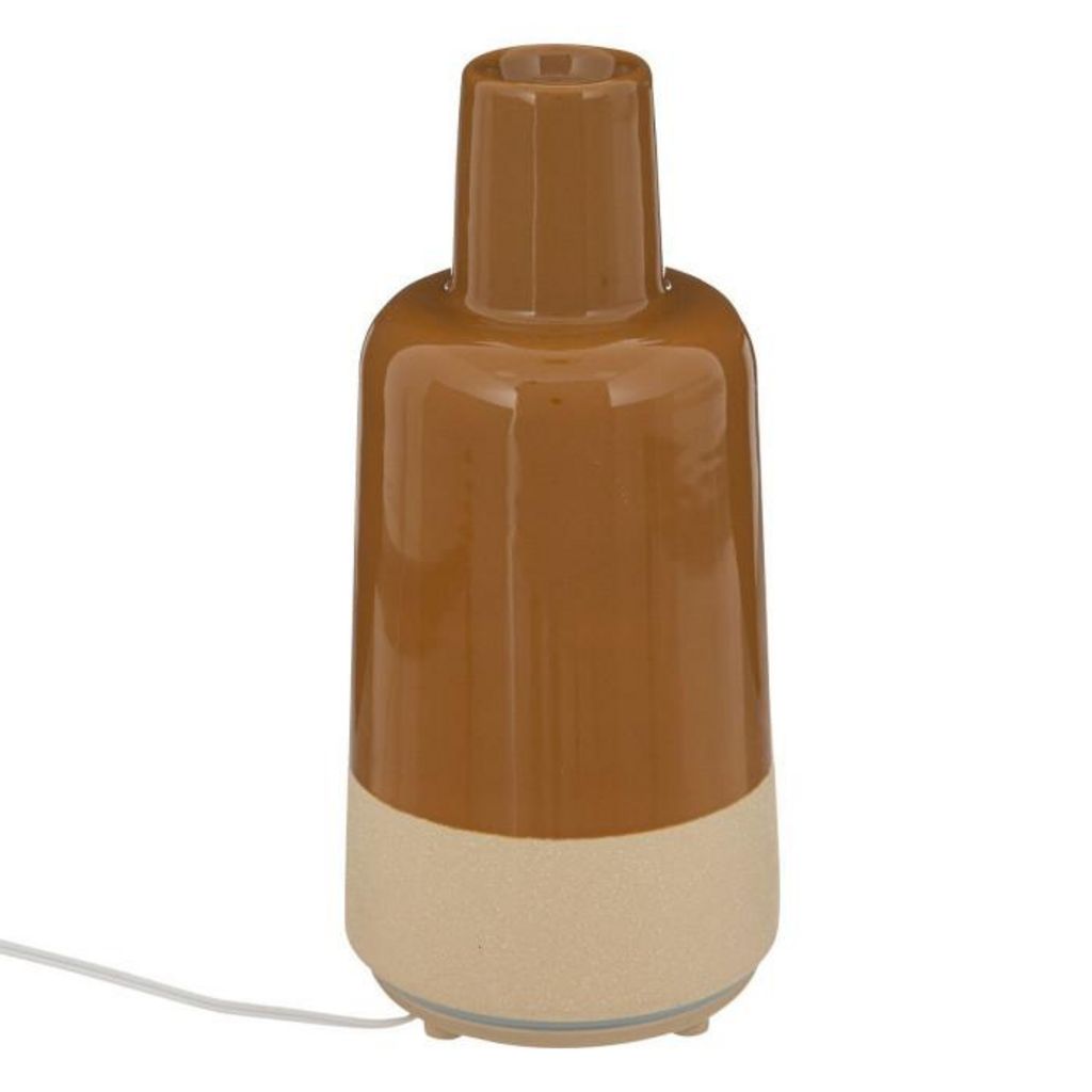Informations Techniques : Dimensions : L. 10,5 x l. 10,4 x H. 22,5 cm Matières : Polypropylène & Porcelaine Spécificités : Chic & Élégant Diffuseur d'Huiles Essentielles Brumisateur Forme Ronde Contenance : 150 ml Poids : 0,9 kg Couleur : Ocre