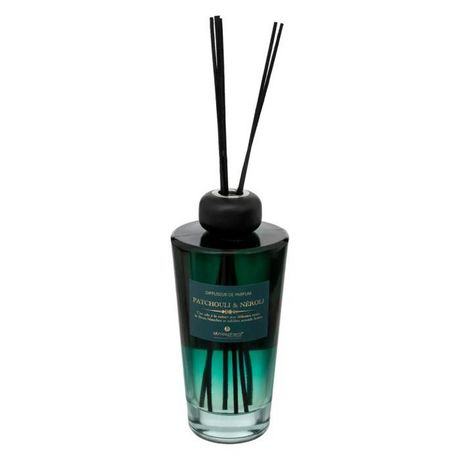 Informations Techniques : Dimensions : D. 10 x H. 28 cm Matières : Verre & Huile Parfumée Spécificités : Déco & Utile Diffuseur de parfum Avec 6 bâtonnets en rotin Types de fragrances : Boisée & Sucrée Senteurs : Patchouli & Néroli Contenance : 500 ml Durée de diffusion : +/- 40 semaines