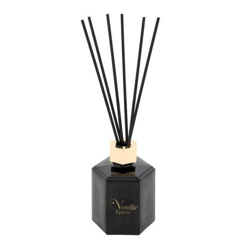 Informations Techniques : Dimensions : D. 7,5 x H. 25,7 cm Matières : Huile parfumée, Verre, Aluminium & Roseau Spécificités : Doux & Parfumé Parfum créé en France Senteur : Vanille épicée Contenance : 120 ml Poids : 0,384 kg Couleur : Noir