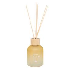 Informations Techniques : Dimensions : D. 6,6 x H. 23,5 cm Matières : Verre, Bambou & Huile parfumée Spécificités : Déco & Utile Diffuseur de parfum Avec 6 bâtonnets Bouchon en bambou Contenant design dégradé Durée de diffusion : 9 semaines Contenance : 150 ml Poids : 0,38 kg Couleur : Jaune