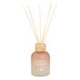 Informations Techniques : Dimensions : D. 6,6 x H. 23,5 cm Matières : Verre, Bambou & Huile parfumée Spécificités : Déco & Utile Diffuseur de parfum Avec 6 bâtonnets Bouchon en bambou Contenant design dégradé Durée de diffusion : 9 semaines Contenance : 150 ml Poids : 0,38 kg Couleur : Rose
