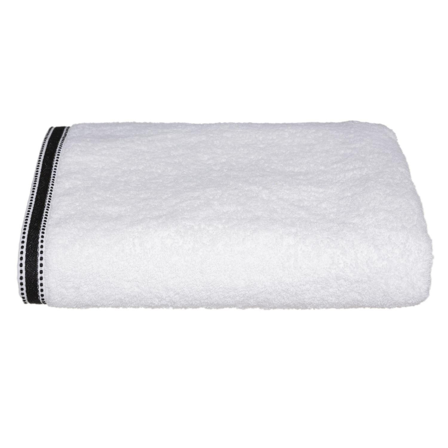 Une serviette de bain comme on l'aime, douce, moelleuse et absorbante qui apportera une touche de couleur dans vos salles de bain.FICHE TECHNIQUE- Drap de bain.- Gamme : Joia.- Détails : avec liseré noir.- Couleur : Blanc et Noir.- Matière : Coton et polyester.- Tissu éponge.CARACTERISTIQUES TECHNIQ