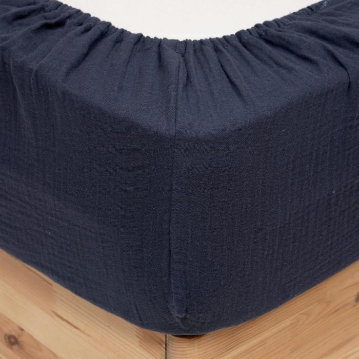 Drap Housse en Gaze de Coton Flora 140x190cm Bleu