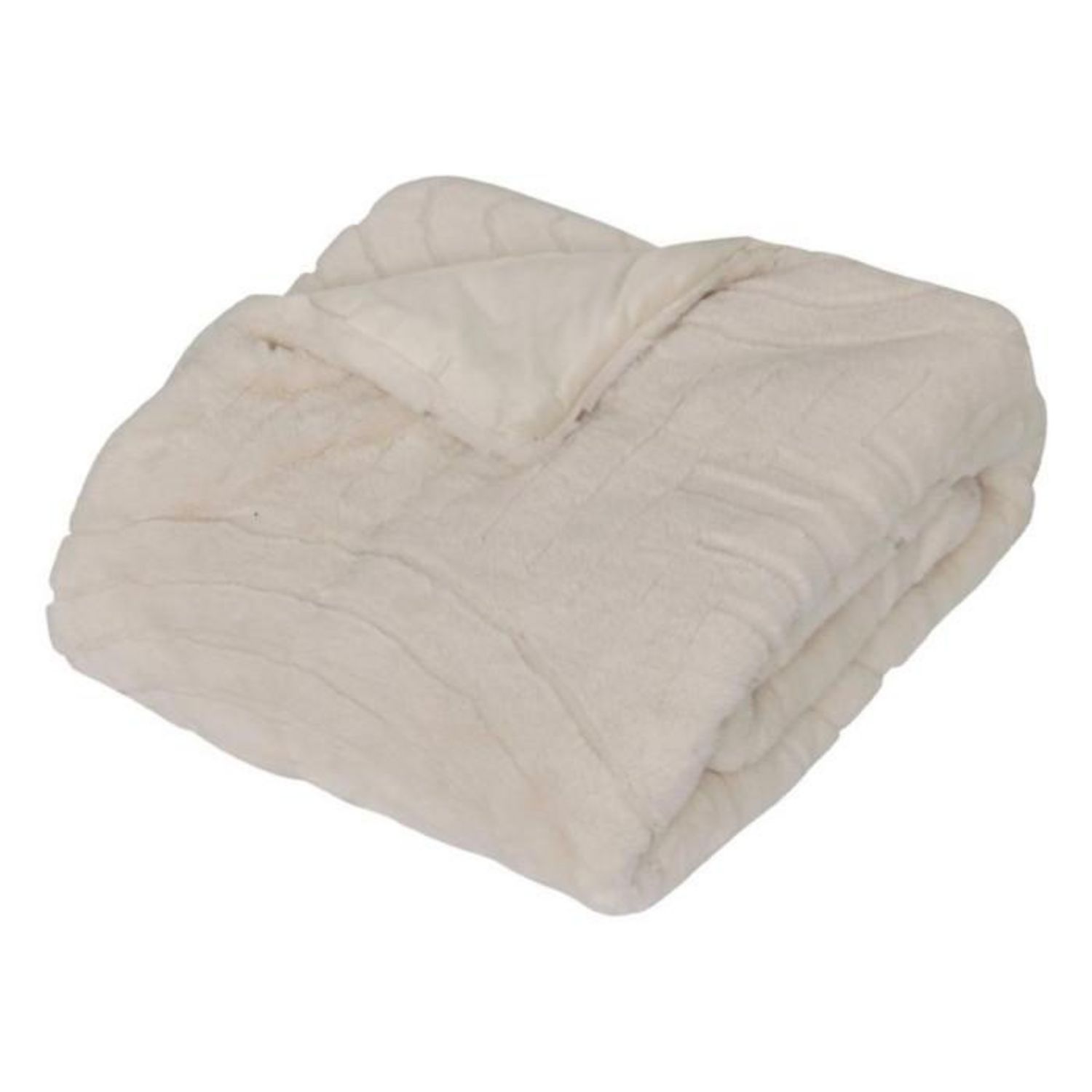 Informations Techniques : Dimensions : L. 180 x l. 80 x H. 1 cm Matière : 100% Polyester Spécificités : Pratique & Doux Edredon effet fourrure Motifs en relief Certifié OEKO-TEX Lavage à 30°C Poids : 1,25 kg Couleur : Ivoire