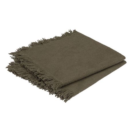 Ensemble de 2 serviettes de table à franges MAHA - 40 x 40 cm - Kaki