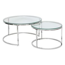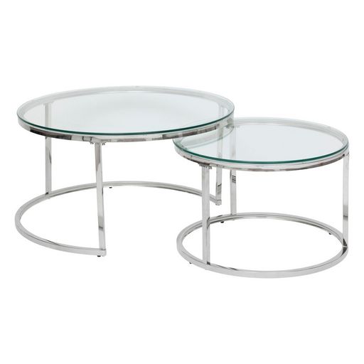 Ensemble de 2 tables basses gigognes en verre et inox KNEO - Argent
