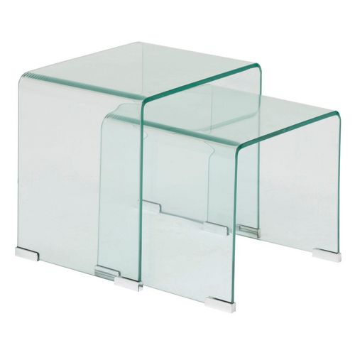 Ensemble de 2 tables café gigognes en verre LENIA - Transparent