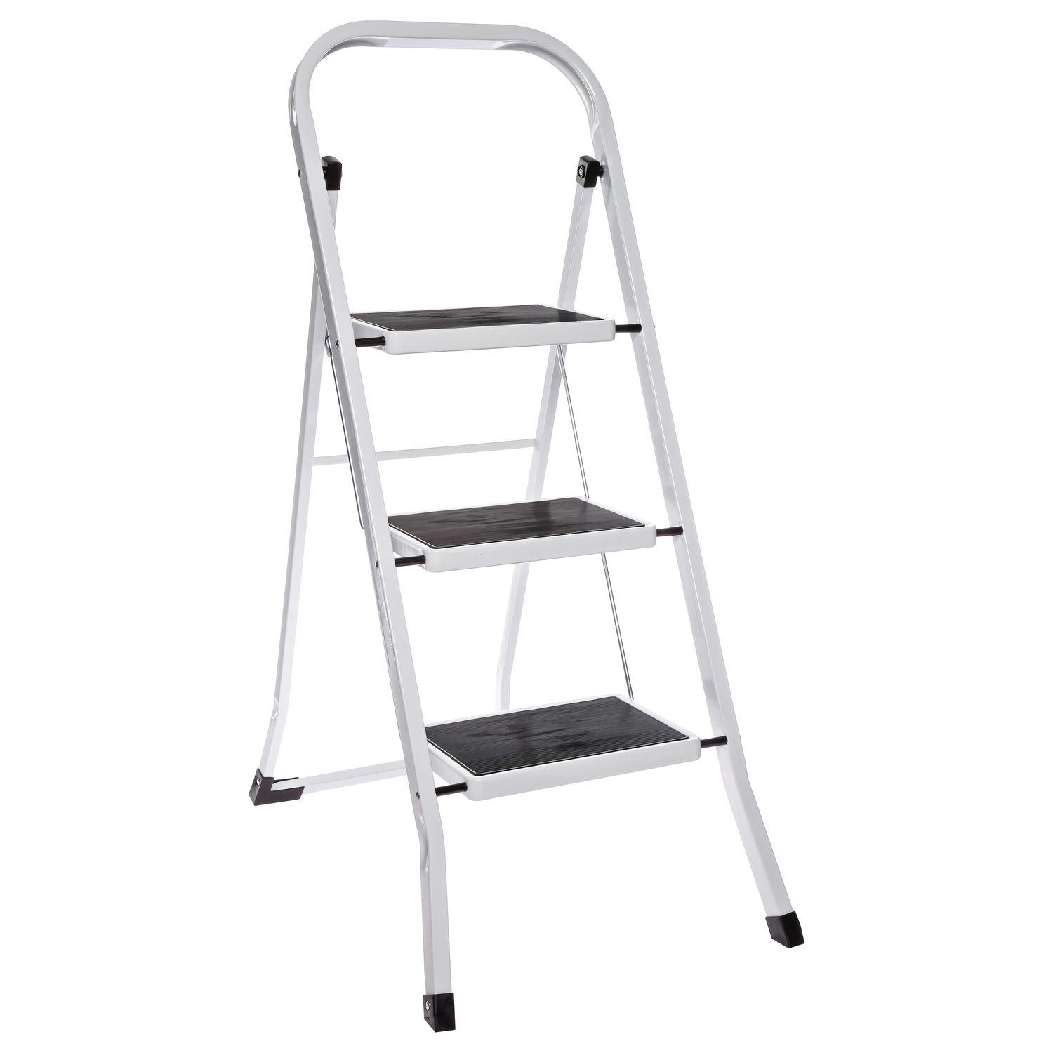 Escabeau à trois marches avec revêtement antidérapant.