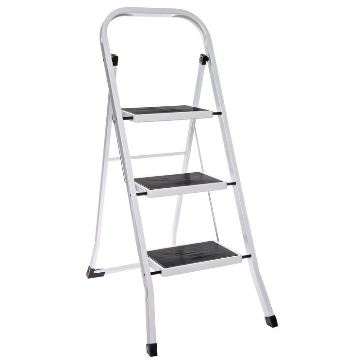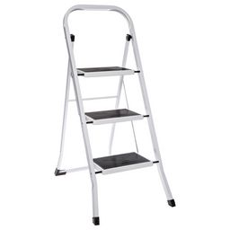 Escabeau à trois marches avec revêtement antidérapant.FICHE TECHNIQUE- Escabeau en fer et acier chromé.- Revêtement des marches en polypropylène.- Verrouillage de sécurité.- Revêtement anti-dérapant sur les marches et les pieds.- Pliable, il est facile et rapide à ranger.- Certification TUV et EN141