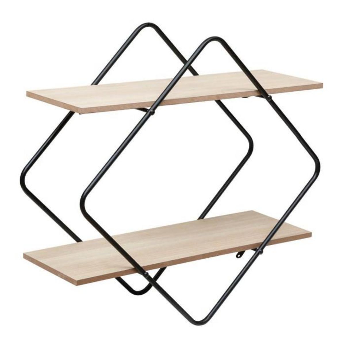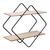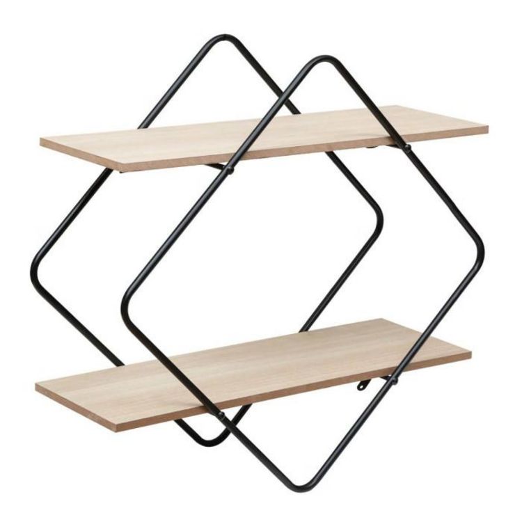 Informations Techniques : Dimensions : L. 48 x l. 18 x H. 48 cm Matières : MDF & Métal Spécificités : Pratique & Utile Étagère murale design 2 niveaux Facile d'entretien & d'utilisation Forme de la structure en losange Poids : 1,43 kg Couleur : Beige & Noir