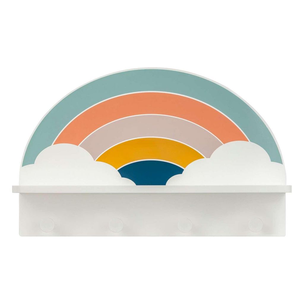 La patère étagère est parfaite pour accrocher les vêtements et accessoires de votre bout de chou. Son motif arc-en-ciel apportera de la couleur et de la douceur dans la chambre de votre enfant. Installez cette patère à sa hauteur pour qu'il gagne en autonomie. Cette dernière dispose de 4 crochets et