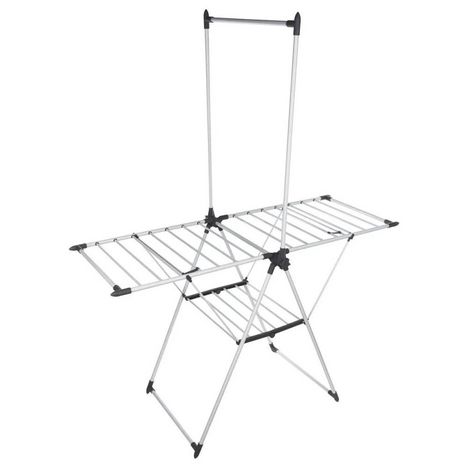 En savoir +Étendoir barre chemise 16m SinaiL'étendoir avec barre pour chemises Sinai a une capacité d'étendage de 16m. Il a été spécialement conçu pour optimiser la place et maximiser la capacité d'étendage du linge.Informations sur l'étendoir barre chemise 16m Sinai :Capacité d'étendage de 16 mètresLarges tubes : ne marque pas le linge et réduit le temps de séchageGrand porte cintres pour sécher les chemisesPliage et blocage facile : molette de serrage pour l'ouverture et fermeture de l'étendoirCales incluses pour fixer les 2 brasPieds anti-dérapantsPour intérieur/extérieurDimensions ouvert : L. 158 x P. 69,7 x H. 180 cmMatière : acier, polypropylènePoids : 3,8 kg