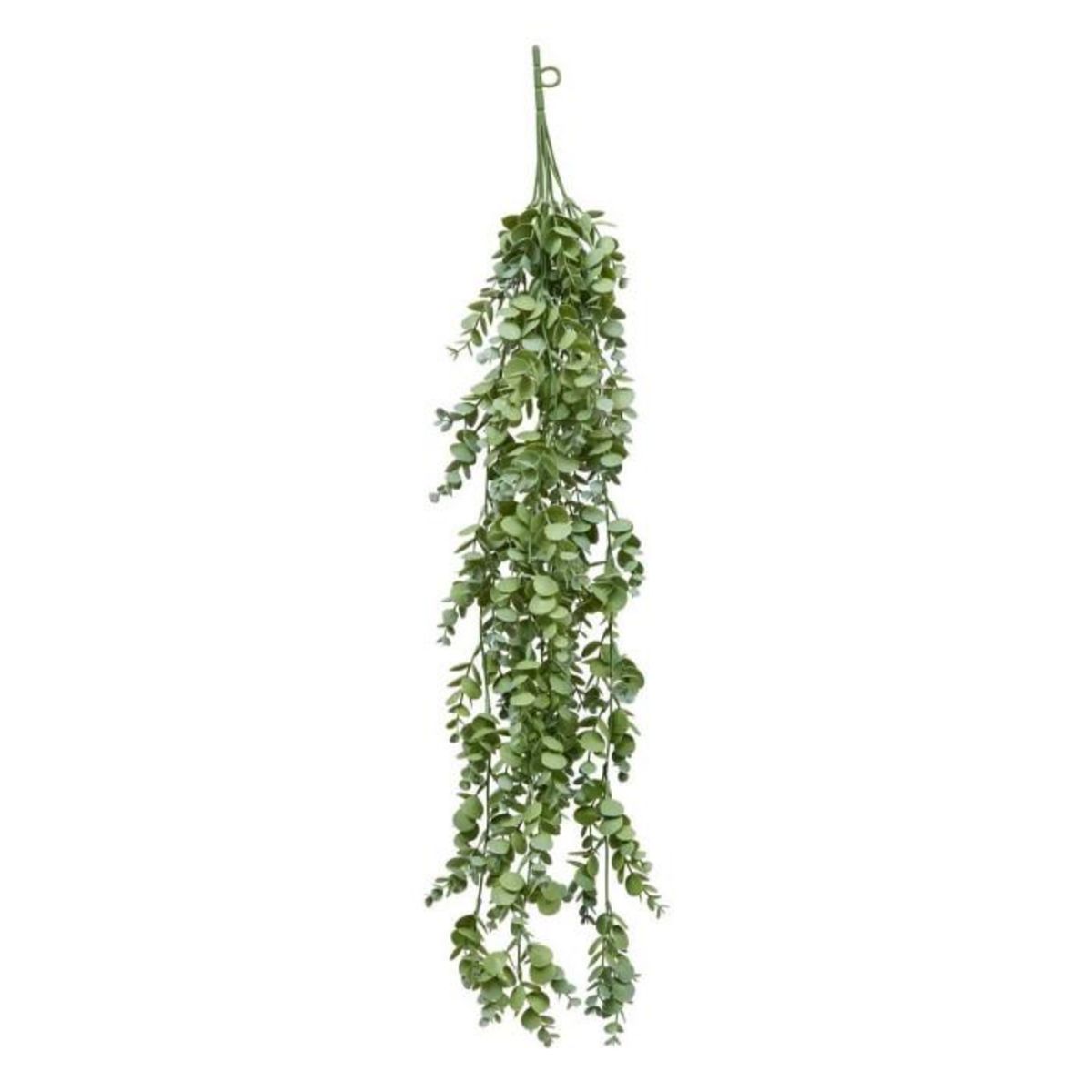 Informations Techniques : Dimensions : L. 20 x l. 10 x H. 80 cm Matière : Polyéthylène Spécificités : Déco & Réaliste Plante tombante Eucalyptus artificiel Cintre de suspension inclus Poids : 0,18 kg Couleur : Vert