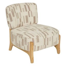 Fauteuil en chenille avec pieds en bois effet naturel CALIX - Beige