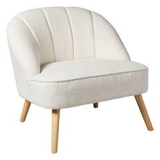 Ce fauteuil offre une assise large et basse, garnie de mousse à accueil semi-ferme pour un confort optimal. Monté sur des pieds compas en bois de pin, il est revêtu de tissu déperlant pour une meilleure résistance aux taches et il est finement surpiqué au niveau du dossier. Associez-le à une table basse en bois et ajoutez un pouf en bouclette pour compléter !