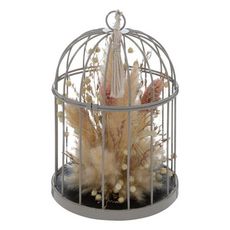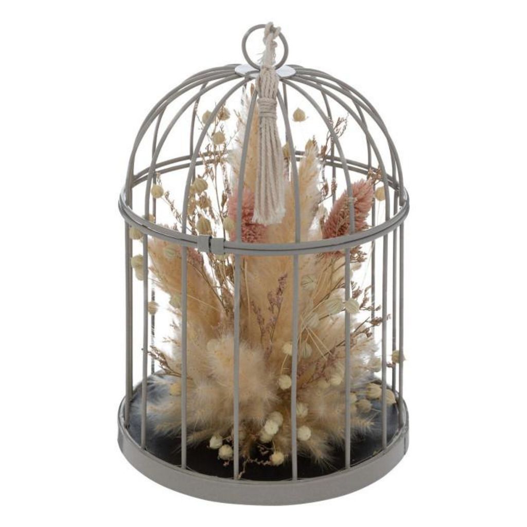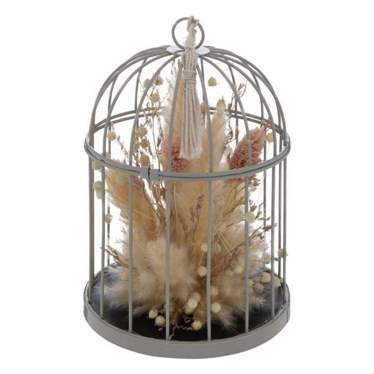 Fleurs Séchées Déco Cage 20cm Gris