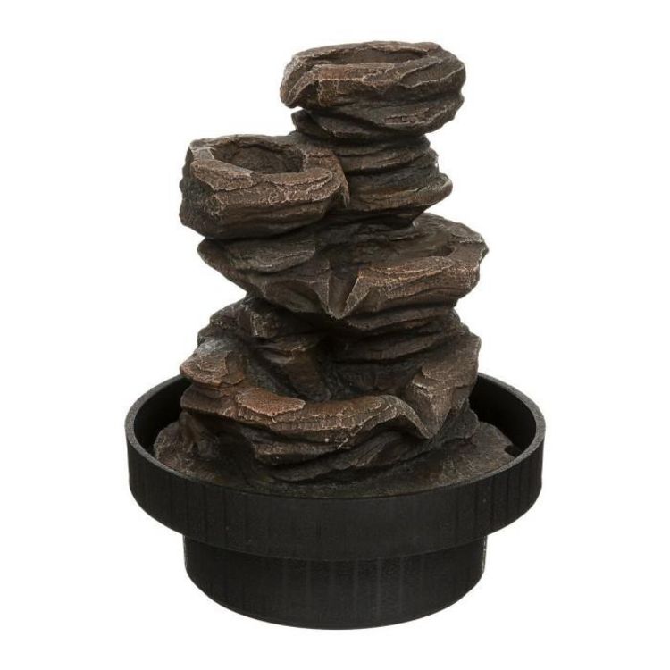 Informations Techniques : Dimensions : D. 18 x H. 22,5 cm Matières : Résine & Polypropylène Spécificités : Pratique & Utile Fontaine Design A Poser Poids : 0,96 kg Couleur : Noir & Naturel