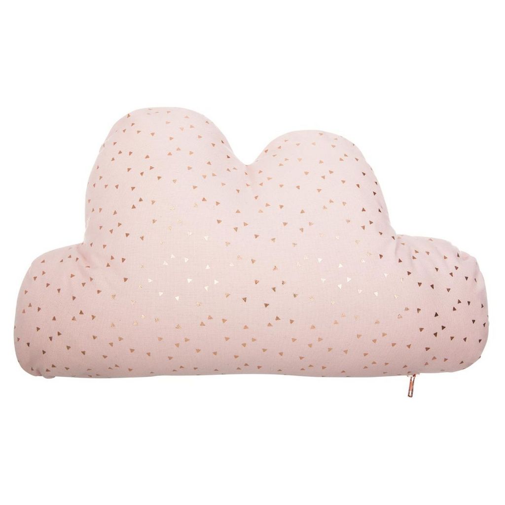 Coussin déco enfant forme nuage triangles dorés et zip