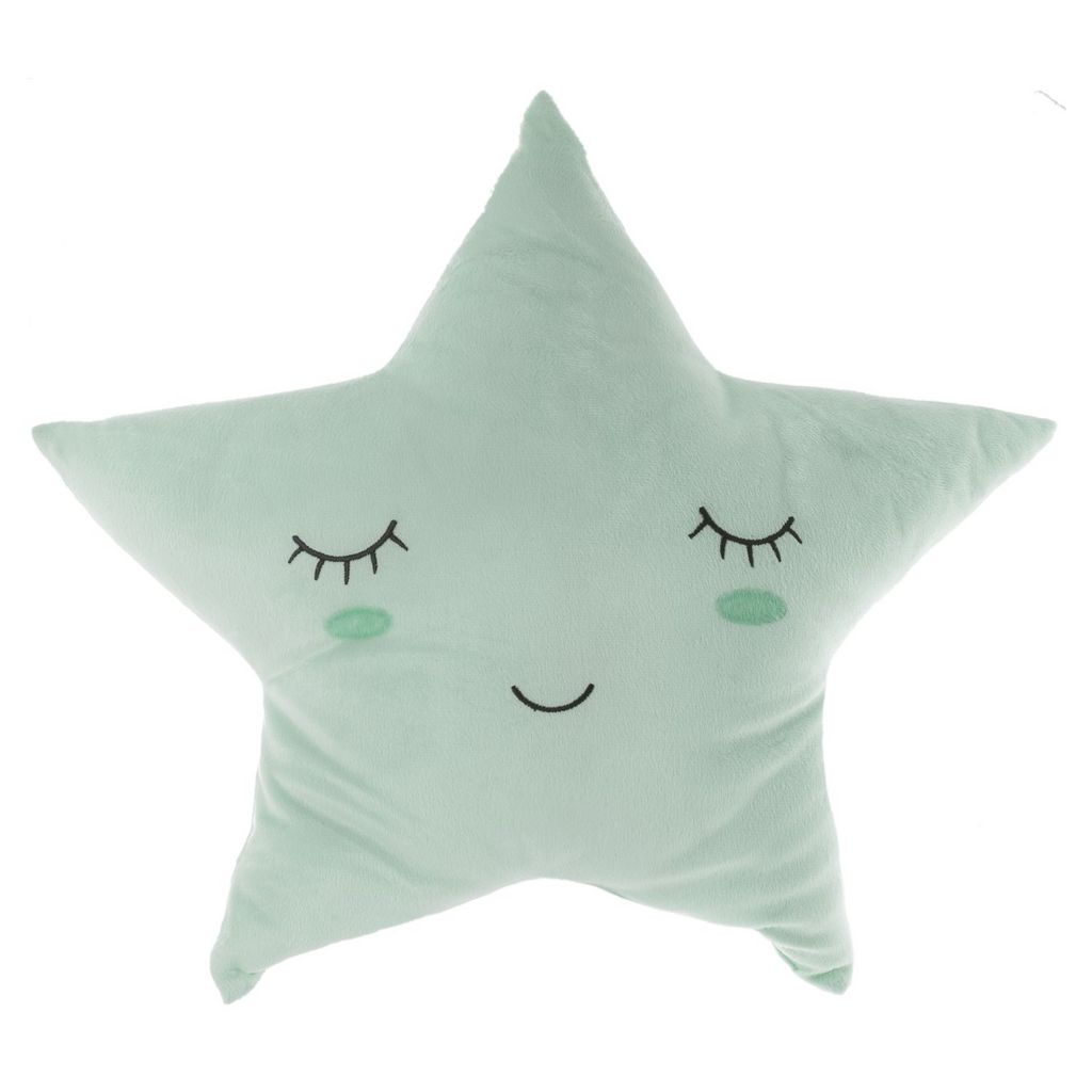 En savoir +Coussin étoile enfant en polyester, rose ou vert au choix ! Cette petite étoile souriante accompagnera en douceur la décoration dans la chambre de votre enfant.