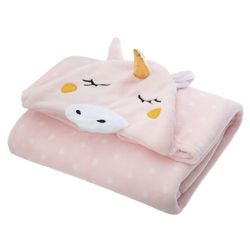 Plaid licorne rose à pois en 100% polyester, idéal pour les enfants ! Ce plaid permet de s'emmitoufler facilement avec la capuche intégrée.