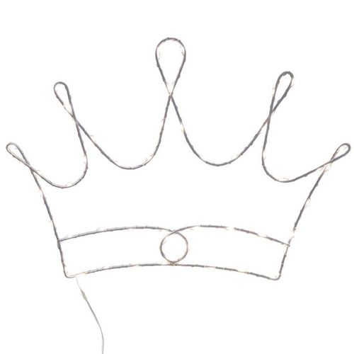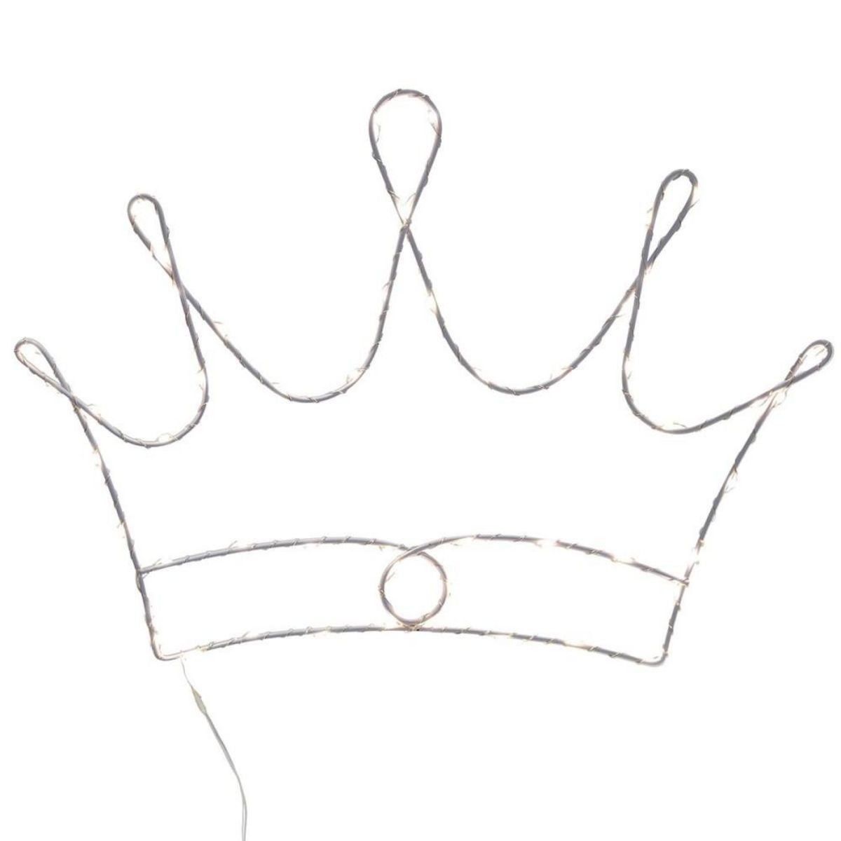 Forme couronne 52 LEDCréer une atmosphère douce et rêveuse avec cette jolie couronne lumineuse à suspendre composée de 52 LED. Lumière chaude et douce pour créer une ambiance cocooning et rêveuse.Une couronne lumineuse pour les petites princesses !Informations sur la forme couronne 52 LED :Composition : métalDimensions : L. 37 x l. 26 cmFonctionne avec 3 piles AA/LR6 non inclusesPour un usage intérieur uniquement