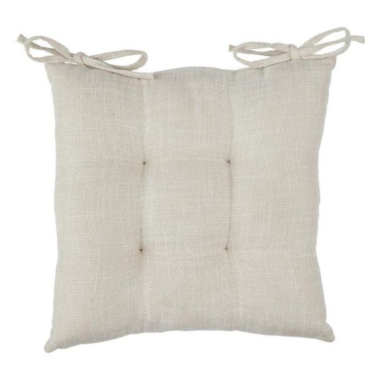 Informations Techniques : Dimensions : L. 38 x l. 38 x H. 5 cm Matière : 100% Polyester Spécificités : Confortable & Utile Galette de chaise carrée Avec liens à nouer Tissage au fini texturé Poids : 0,44 kg Couleur : Beige Lin