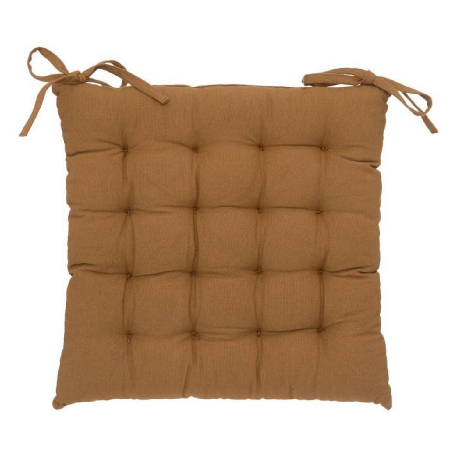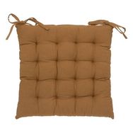 Informations Techniques : Dimensions : L. 38 x l. 38 cm Matière : 100% Coton Spécificités : Confortable & Pratique Galette de chaise Avec liens à nouer Forme carrée Poids : 0,55 kg Couleur : Cannelle