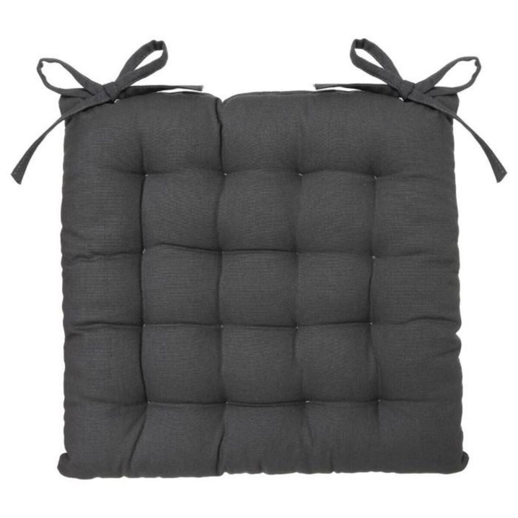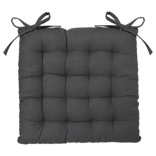 Informations Techniques : Dimensions : L. 38 x l. 38 cm Matière : 100% Coton Spécificités : Confortable & Pratique Galette de chaise Avec liens à nouer Forme carrée Poids : 0,3 kg Couleur : Gris Foncé