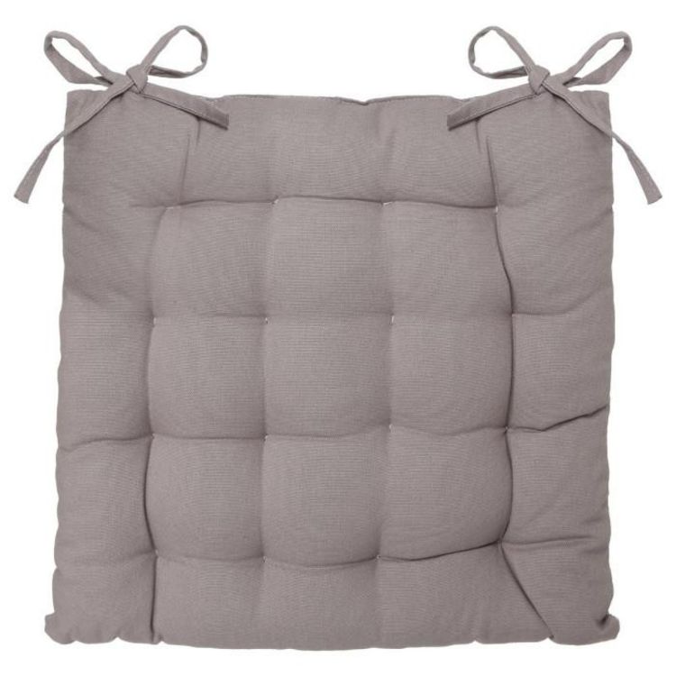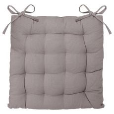 Informations Techniques : Dimensions : L. 38 x l. 38 cm Matière : 100% Coton Spécificités : Confortable & Pratique Galette de chaise Avec liens à nouer Forme carrée Poids : 0,3 kg Couleur : Gris