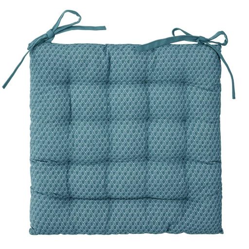 Couvrez vos plus belles chaises avec cette galette de chaise à nouer.FICHE TECHNIQUE- Galette de chaise matelassée en coton- 4 liens sur un côté de chaque galette- Non déhoussable- Matière : cotonCARACTERISTIQUES TECHNIQUES- Dimensions : L. 38 x P. 38 x H. 7,2 cm- Poids : 0,59 kg