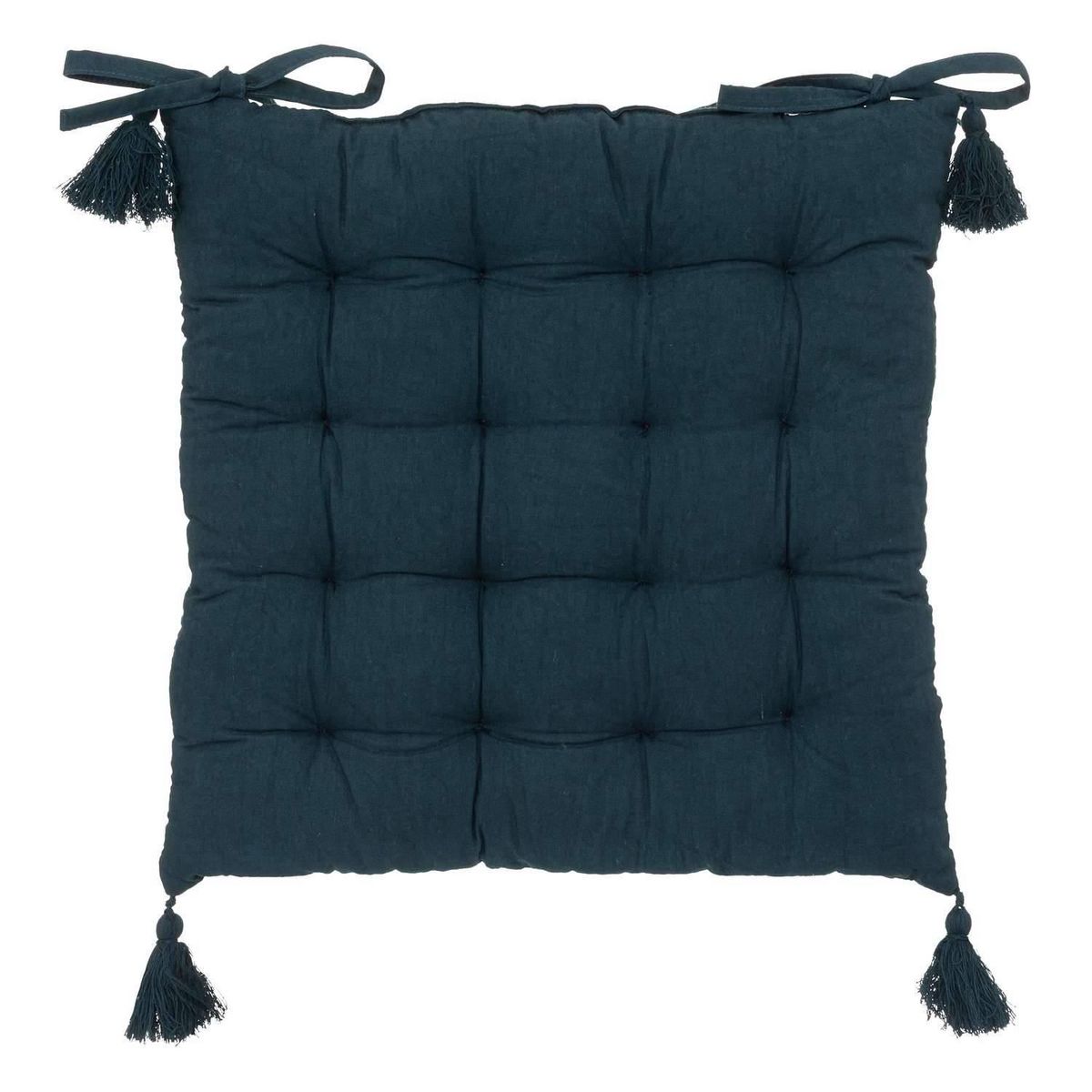 Indispensable pour habiller des chaises avec une touche bohème, la galette de chaise Tampa est réalisée en coton surpiqué et elle est généreusement rembourrée pour plus de confort. Brodée de pompons dans chaque coin, elle se fixe grâce à des liens à nouer aux montants.