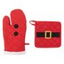 Même dans la cuisine créez la plus belle des ambiances pour Noël avec cet ensemble gant et manique Père Noël rouge. Fabrication coton.Informations sur l'ensemble gant et manique Père Noël :Dimensions : L. 16 x P. 2 x H. 32 cmMatière : 100% cotonPoids : 120 g