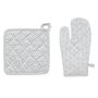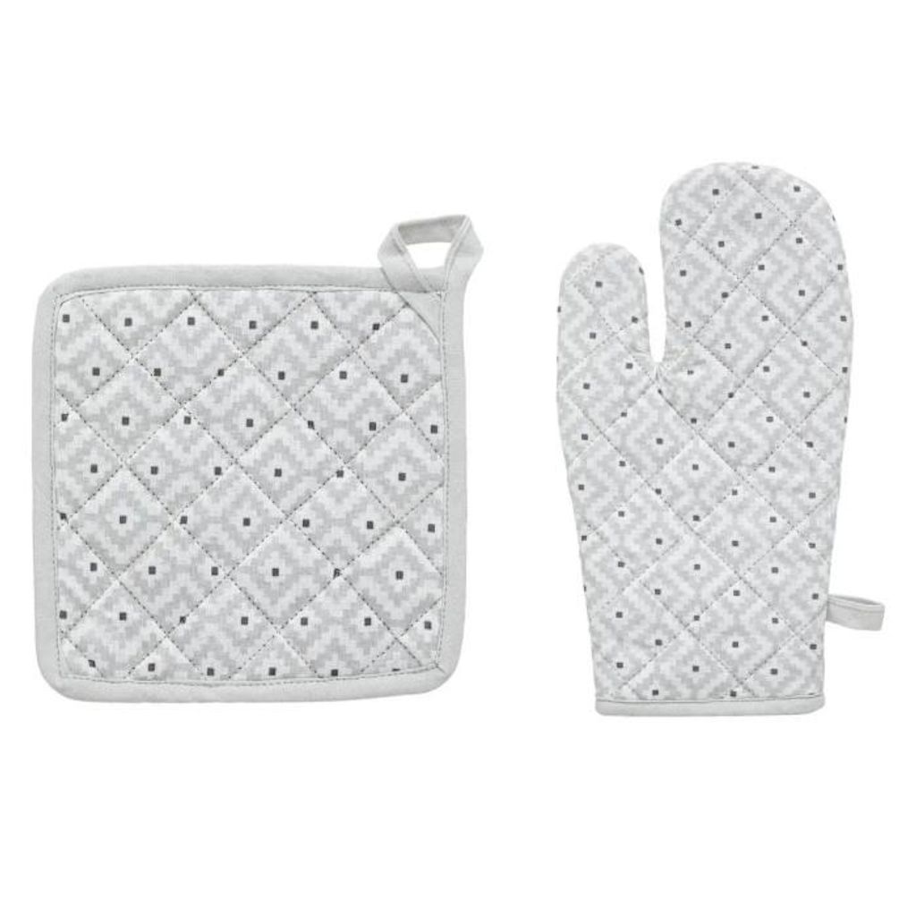 Informations Techniques : Dimensions : Gant : L. 32 x l. 1 x H. 20 cm Manique : L. 20 x l. 1 x H. 20 cm Matière : Coton Spécificités : Tendance & Moderne Gant & Manique Accroche Boucle Motif Imprimé Poids : 0,19 kg Couleur : Bleu