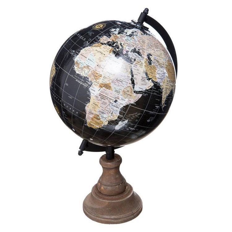 Très joli globe terrestre en bois pour une atmosphère d'explorateur dans votre intérieur. Avec sa structure tout en métal d'une hauteur de 32 cm, ce globe sera un atout déco indéniable.Informations sur le globe terrestre base bois H32 :Couleur : noirDimensions : L. 19,5 x P. 18 x H. 32 cmMatières :