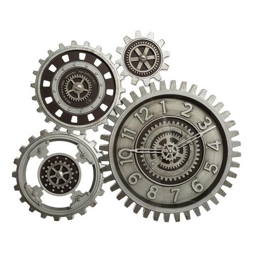 Grande pendule multi mécaVous rêvez d'une décoration steampunk dans votre salon ? C'est maintenant possible avec cette superbe grande pendule multi méca de dimensions 57 x 58 cm tout en mécanique apparente. Les 4 centres des mécanismes tournent !Informations sur la pendule multi méca :Composition :