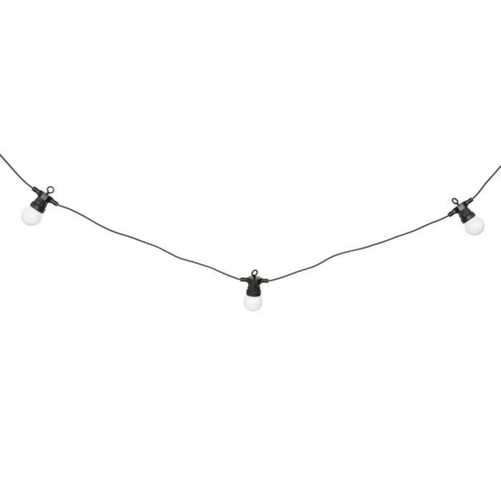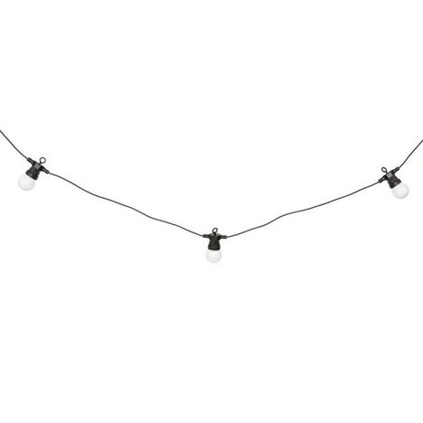 Informations Techniques : Dimensions : D. 5 x L. 800 cm Matière : PVC Spécificités : Pratique & Utile Guirlande solaire 10 ampoules LED Usage extérieur Pile incluse Type de piles : 1 x NiMH - HR6 / AA - 1,2 V IP : IP44 Poids : 0,58 kg Couleur : Noir & Blanc