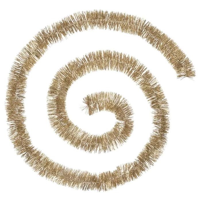 Informations Techniques : Dimensions : L. 50 x l. 4 x H. 200 cm Matière : PVC Spécificités : Pratique & Utile Guirlande de Noël Design Brillant Largeur de Brins : Fins Nombre de Plis : 4 Epaisseur (microns) : 35 Poids : 0,02 kg Couleur : Or