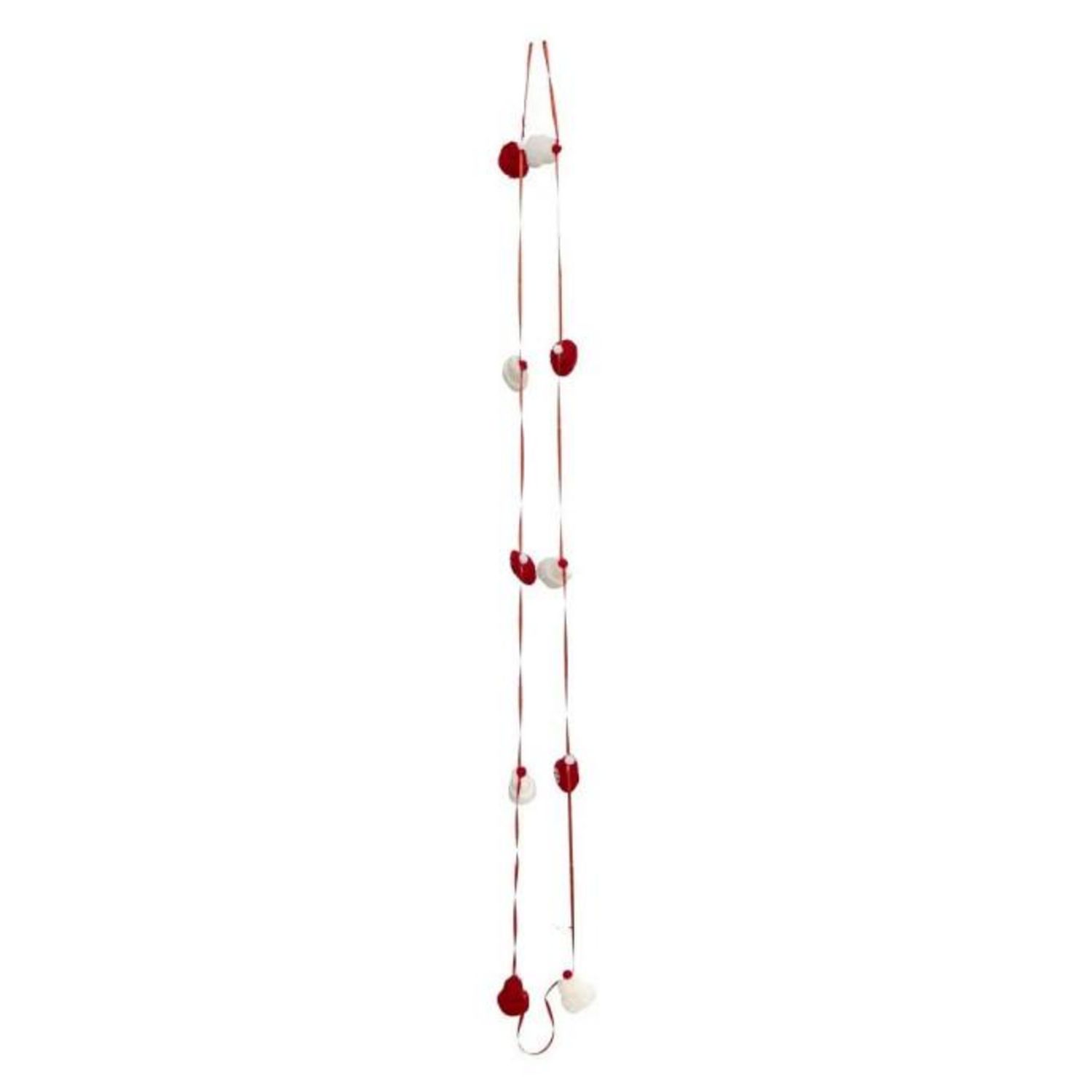 Informations Techniques : Dimensions : L. 3,4 x l. 2 x H. 200 cm Matière : Polyester Spécificités : Pratique & Utile Guirlande de Noël Ruban en Satin Design Bonnets avec Pompons & Flocons Poids : 0,02 kg Couleur : Rouge & Blanc